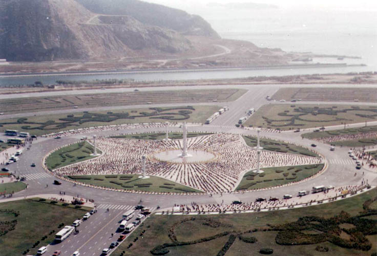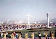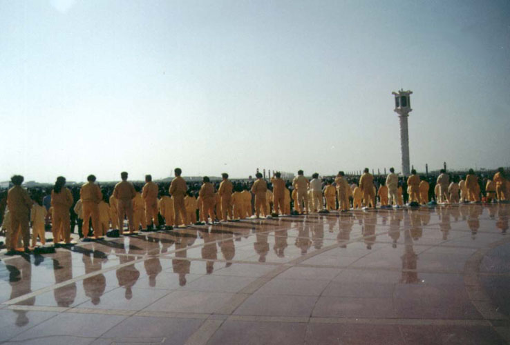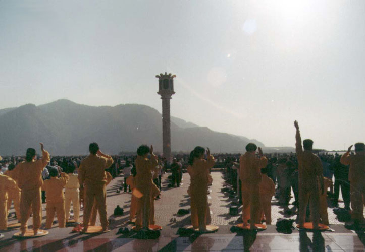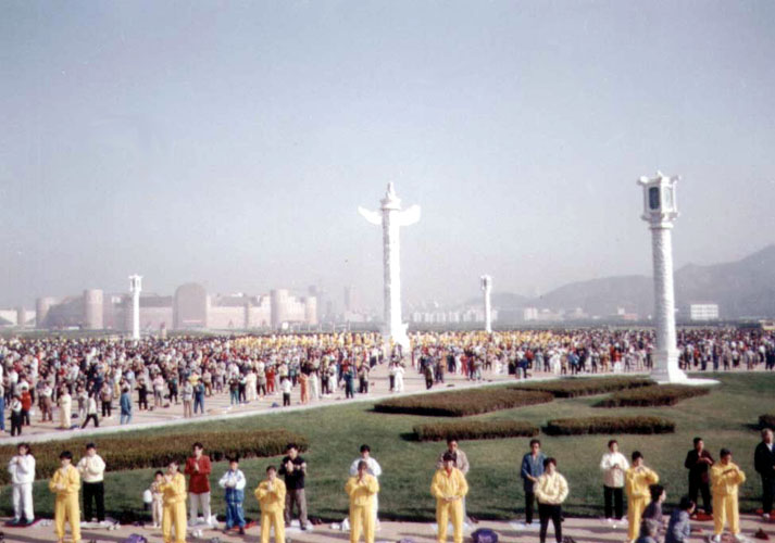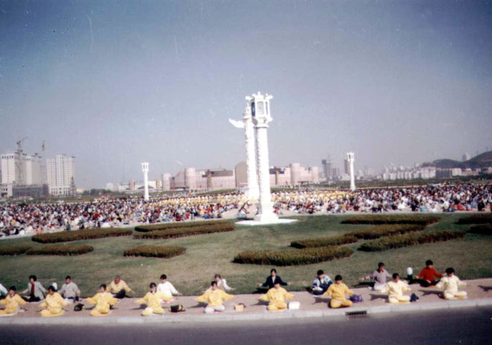 历史图片:1999年5月双城市大法弟子在东门广场集体炼功