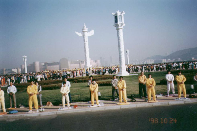 历史图片:威海环翠区法轮功学员在市府前广场集体炼功