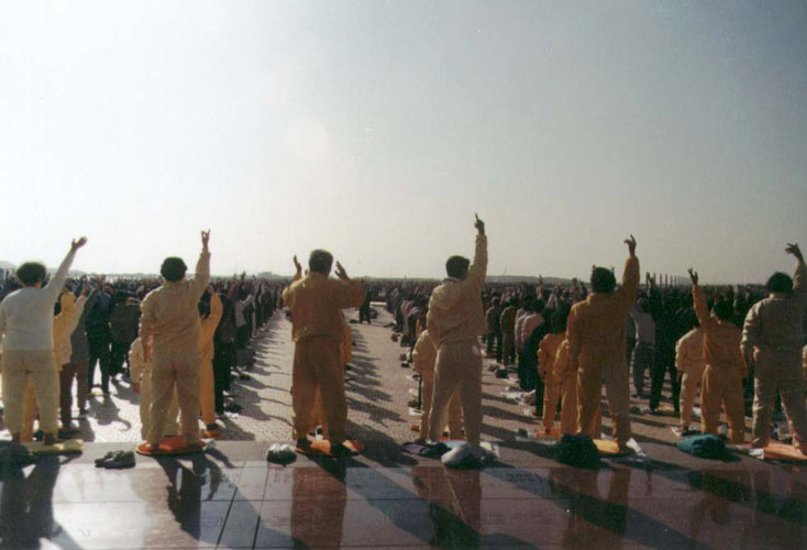 历史图片:法轮功小弟子在深圳体育广场集体炼功