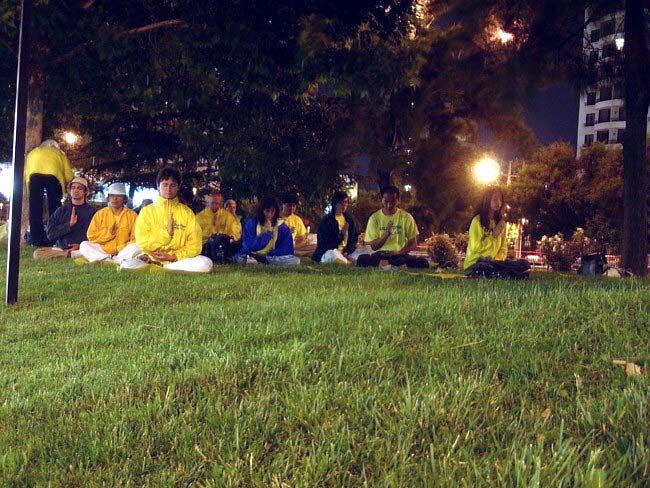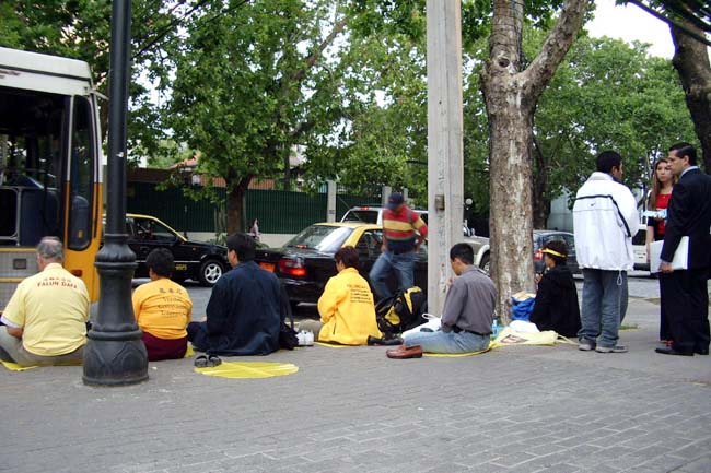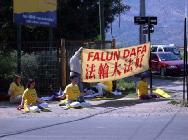 ![]() 在APEC峰会附近请愿 | ![]() 示范功法 | ![]() 在胡锦涛下榻的旅馆前发正念 |
