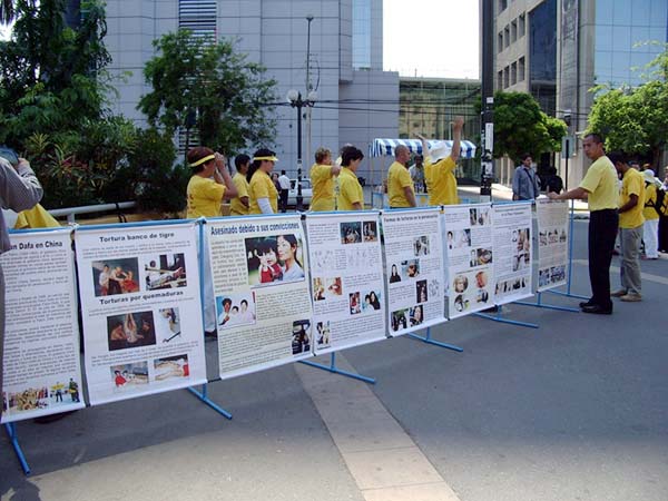 APEC各国首脑峰会在Espacio Riesco举行,远离圣地亚哥金融中心。但学员们仍然赶到那里,并在会场必经的两个入口处附近示范法轮功功法,派发真象资料。多家电视台和报社等媒体对法轮功学员的活动進行了采访报道。