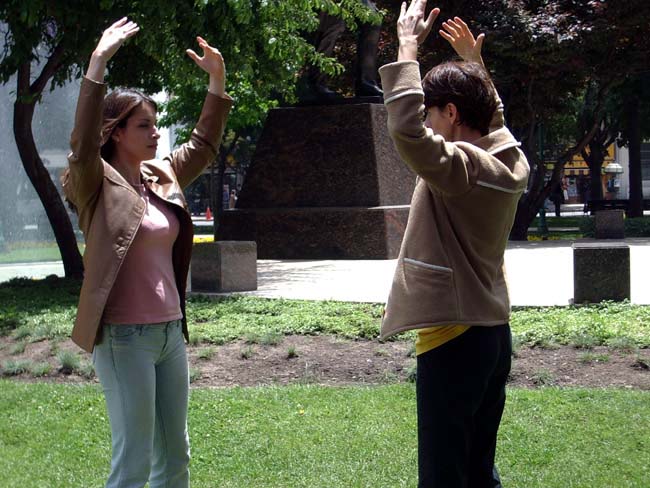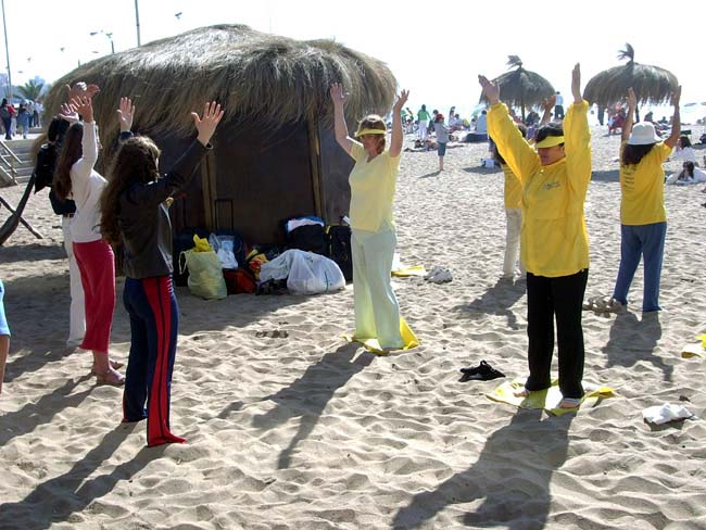 学员们还在附近的海滨市Vi del Mar洪法,向当地市民和游客派发真象资料。许多人看到我们的功法展示后学了功法动作。