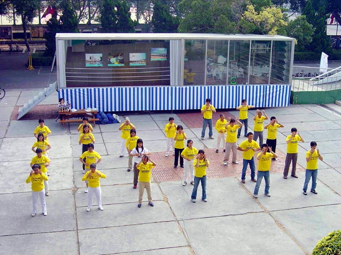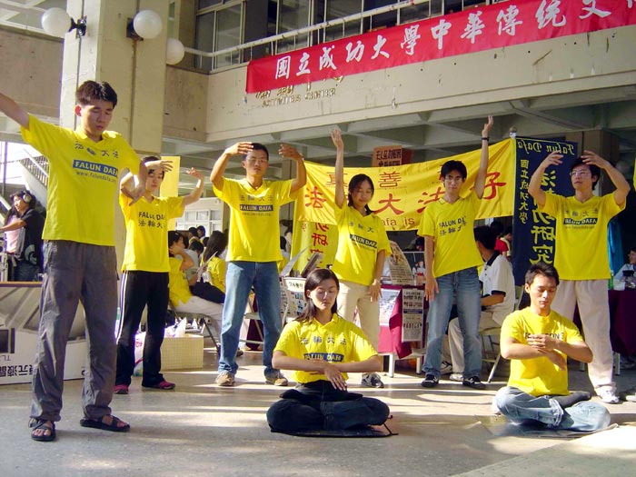 成大法轮功研究社在随后的一周11月12~17日于成大学生活动中心举办“正法之路图片展”,展出期间有不少同学前来了解,索取大法书籍、真象资料回去阅读。特别的是,有不少参观民众请学员们展示功法,并且当场学习。还有一群练舞的高工学生,当学员向他们说明法轮功被迫害的真象时,他们严肃的聆听,并对江氏的残暴行径感到愤怒,想多了解法轮功。由此可见,任何有善念的人,都反对江氏对真善忍的迫害。