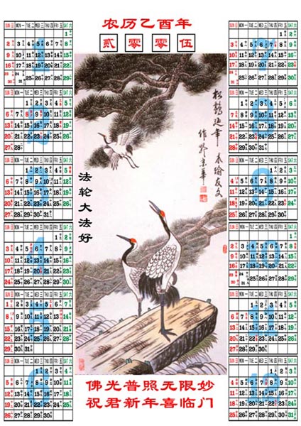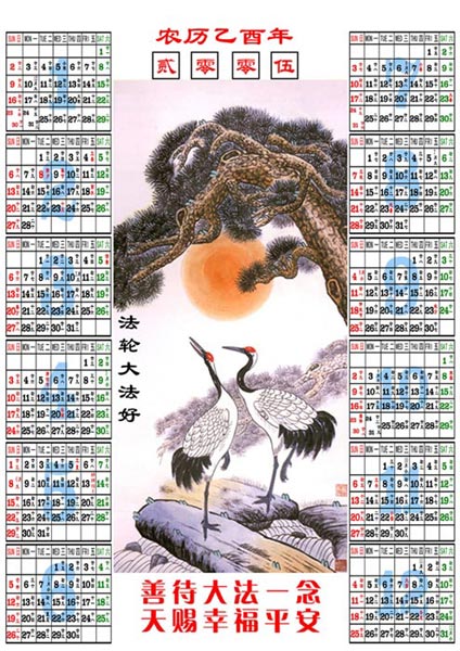 2005年日历卡片一款;2005年鸡年吉祥卡片一款