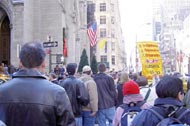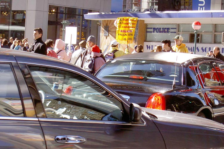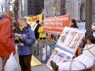 ![]() 大法弟子清晨六点半就出现在纽约街头 | ![]() 无畏寒风飕飕 |