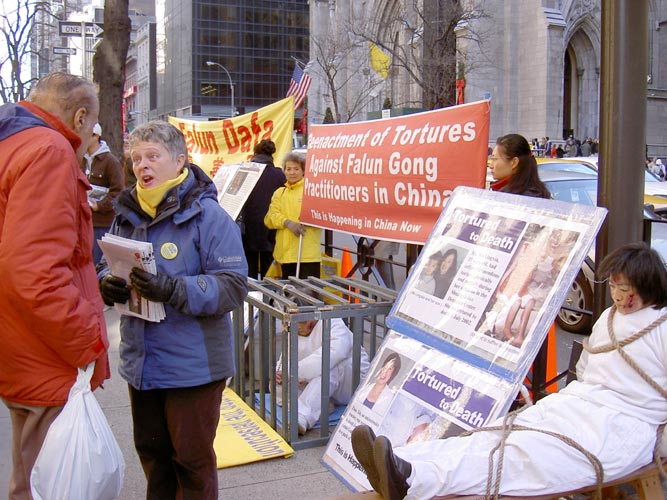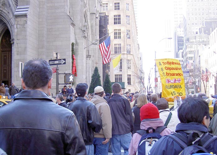 后来,我想通了,法轮功学员心里装着每个人的未来,我们的笑容与和善都具有正面的力量,在冷漠的纽约街头是让人安心的象征。寒冷的早晨,当人们赶着上班、心里盘算公事时,猛然一抬头看到法轮功学员的笑容,就像碰见老朋友一样愉快。