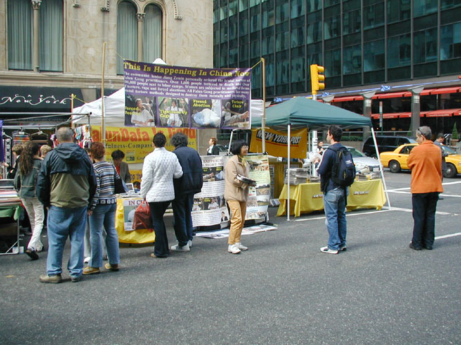 自2004年8月开始,每个周末法轮功学员的展位成了街市上一道独特的风景。每个周末这里都有一些很感人的故事发生,这里选择2-3事和大家分享。