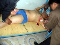 由于腋窝拧的洞太大,又造成感染,肉长不上了,最后卫生所处理不了,狱医梁大夫把黄跃东带到九台市医院医治。当大夫、护士问其原因,梁为掩盖九台劳教所犯罪事实,撒谎说是汽车撞的。黄跃东当时就告诉大夫:“不是车撞的,我是法轮功学员,是被它们迫害的。”大夫与护士感到很吃惊:怎么这样残忍!如不亲眼所见,很难相信。