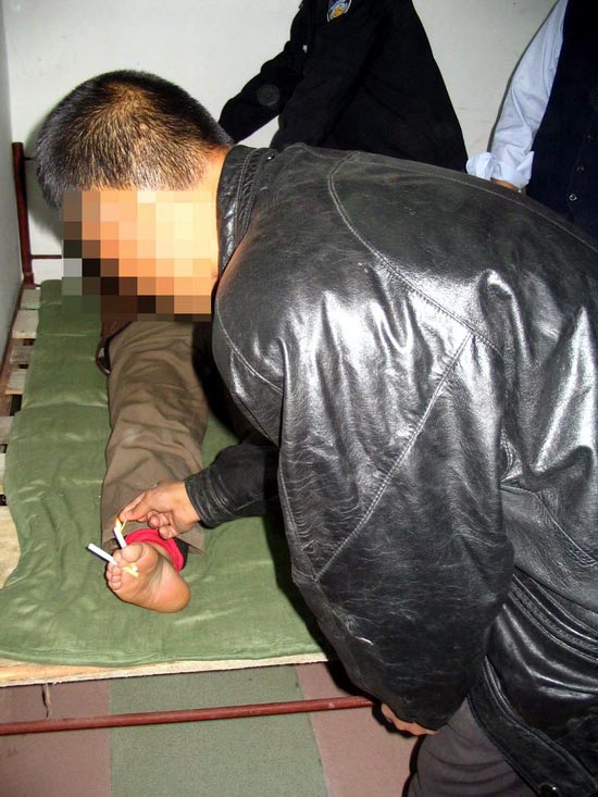 一大队大队长叫史春峰,此人是一个邪恶之徒。2002年,一大队被迫害最严重的是大法弟子黄跃东,为了转化黄跃东,史春峰带领一群恶警和几名恶人将黄绑到床上,用“小白龙”(直径为一寸的白色塑料管,约20厘米)钻其大腿内侧,两腋窝内侧,各钻出四个拳头大小的窟窿,致软肋骨折,胸腔穿孔透气,还拧出了粗擀面杖大的两个洞,然后放上盐,用牙刷刷,然后再用电棍伸到那两个窟窿里电,手段极其残忍。