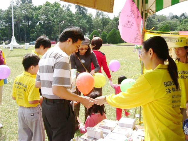 法轮大法社团成员也参与舞台表演的活动,在演示优美祥和的五套功法过程中,学员用麦克风向观众介绍功法并讲述法轮功真象。从法轮大法已洪扬世界六十多国,说到中共江氏集团出于妒忌,五年多来无理镇压这群向善的好人、大陆学员数十万人被非法关押及一千多人被迫害致死的消息等。