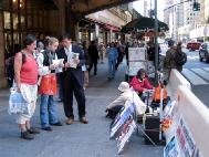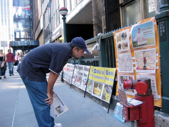 ![]() 纽约街头讲真象 | ![]() 民众非常专注看着展板说明 |