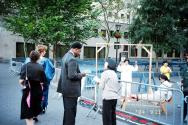 黄先生的母亲也一同参与这次讲真象的活动。她说有位西方人跟她说,“我已拿了四份材料了,我很了解你们,我支持你们。”一日在公园旁洪法讲真象,到黄昏时一位黑人摊贩将他所卖的面包和香蕉都送给学员,且一分钱也不要。学员也跟他讲这场迫害的真象,他不断比着大拇指称赞。她还说,在纽约的大事除了总统大选外,就是法轮功了,不管在电车上或路上随时随地都可以听到人们在谈论法轮功,看到法轮功学员穿着黄色衣服穿梭在人群中。