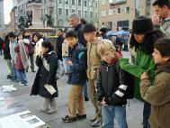 在活动中,逼真的酷刑模拟、揭露邪恶迫害的图片,加上熊伟的现场讲解,使得人们对江氏集团镇压法轮功的罪行有了進一步的了解,甚至出现了排队在审江呼吁书上签名的情景,有不少青少年都争着签名,还有一个小朋友问妈妈他可不可以签,妈妈爽快的答应了,他郑重的写下姓名。
