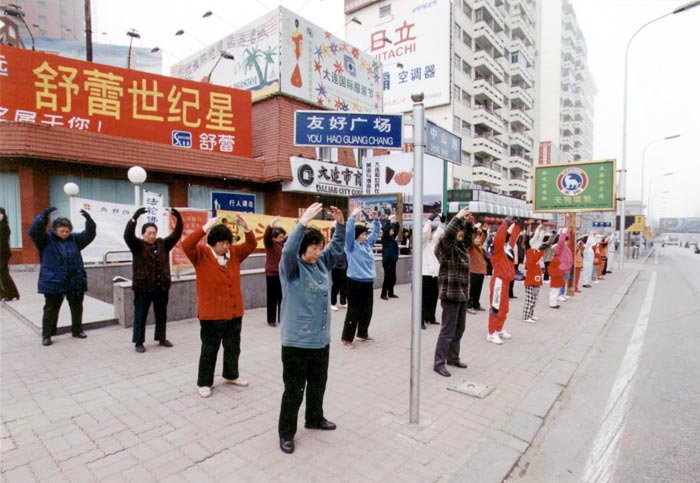 历史图片:1999年7.20前大连市的法轮功晨炼和法会
