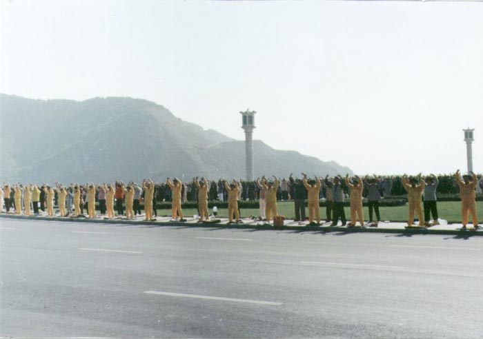 历史图片:威海环翠区法轮功学员在市府前广场集体炼功