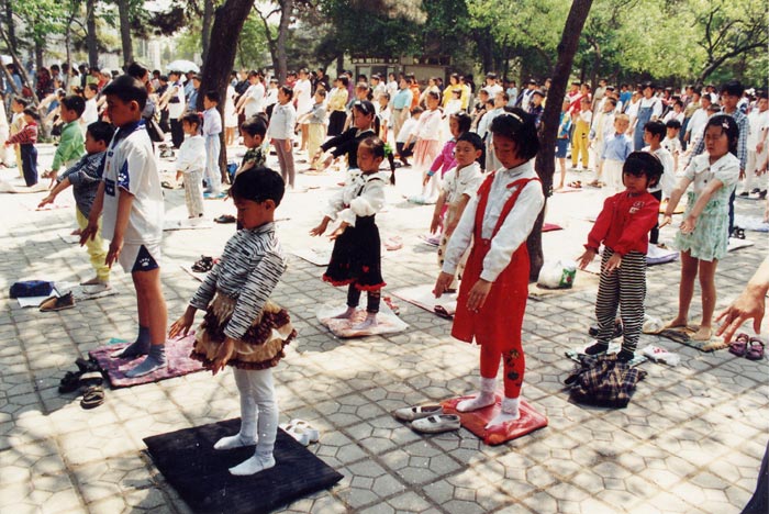 历史图片:1999年7.20前大连市的法轮功晨炼和法会