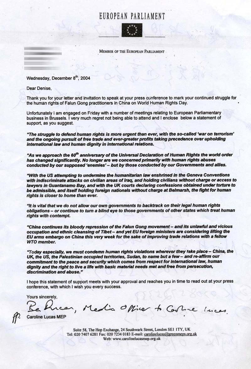 ![]() 英国牛津区大主教理查德•哈里斯先生的来信 | ![]() 欧盟议员凯若兰•露卡斯博士的来信 |