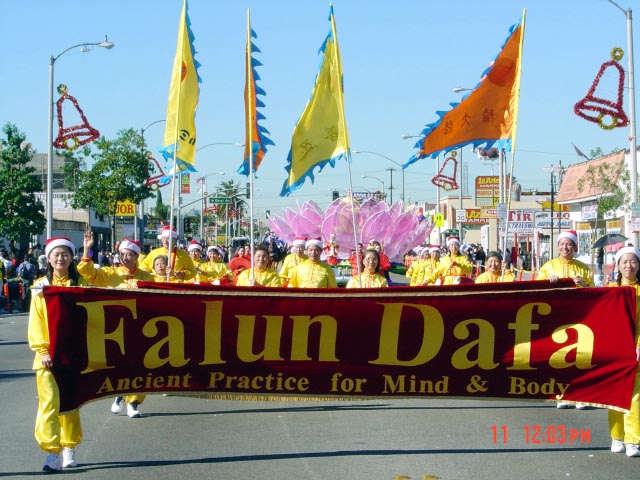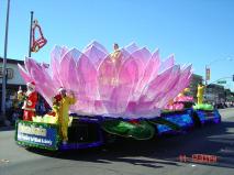 第二天的游行不仅有电视台实况转播,而且还有评委会打分。当法轮功学员的队伍来到主席台前的时候,人们都起立为学员们鼓掌。电视转播员更是兴奋的向观众们介绍着法轮功在世界洪传的情况。这个游行录像将在圣诞节重新编辑播放。