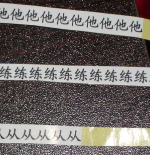 然后把用不干胶打印好的字(如果没有不干胶,可以用两面胶粘在纸的后面来代替),用剪刀按行剪开。