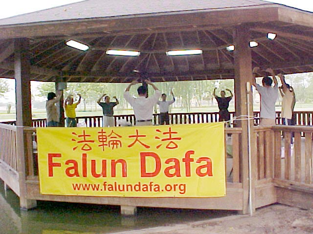 1994年8月3日,休士顿市授予李洪志老师荣誉市民和亲善大使称号。1996年10月12日,李洪志师父来休士顿讲法,这一天是最殊胜的一天,美国和一些其他国家的近六百学员在侨教中心大礼堂聆听师父讲法。休士顿市市长宣布一九九六年十月十二日为“休士顿李洪志大师日”,市长在《公告》中写道:‘法轮大法超越于文化和种族界限,把宇宙真理传扬世界各地,架起了东西方沟通的桥梁。李洪志先生不辞辛苦的将法轮大法传向海内外,所到之处使诸多国家众多的人们深受震撼,从而赢得了国际声誉。’我们在法会结束的第二天,也就是10月13日,成立了辅导站,每周末在侨教中心106教室集体炼功和学法。后来,人数越来越多,换了几个地方,最后就固定在阿索斯多瑞公园( Arthur Storey Park),每星期日早晨炼功,屈指一数,从那时到现在整整过了八个年头了。”