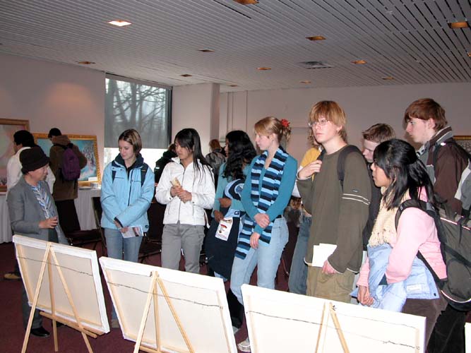 这些善良人们发自内心的支持令参加艺术展的学员们深深的感动,也为更多的人明白了真象而欣慰。艺术展中美好的艺术作品开启了人们的心灵来了解大法和迫害的真象,参观展览的人们纷纷表达了对法轮大法的支持和对迫害的谴责。同时也有很多有缘人希望能够更进一步亲身体验法轮大法的美好,很多的师生留下了他们的联系信息,希望能够尽快学习五套功法。