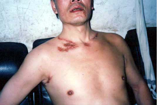 在都匀的监狱中,王良均颈部被犯人们抓伤,(在江氏邪恶集团的“打死算自杀”的命令下,犯人们殴打法轮功还可以立功、减刑)王良均颈部严重化脓.医生和犯人们拿来剪刀剪他的脓包,王良均听见自己的肉被剪开的声音,他痛得昏过去。接着他们又用酒精来给他洗感染了的伤口,王良均痛得撕心裂肺的大叫,可那些人装“听不见”,他又被折磨得昏死了过去。洗完后又缝针,时至今日,两年前缝针的线还在他的肉中.他的右手腋窝处也被犯人抓了一道四寸长的伤口,至今伤痕还很清晰。他的胸部全被感染。