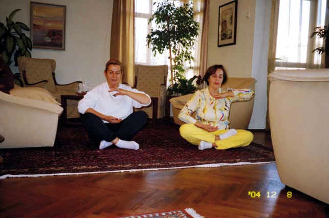 这是一位土耳其新学员,是一位银行行长,非常喜欢法轮大法,从我的炼法轮功的朋友那儿听说后主动打电话找到我。她学功时,第一次就掌握了第三套功法的在小腹部位顺时针旋转四次的正确动作!这是很不一般的,因为有许多学员至少两次三次以后才能掌握准确。她还主动带几个朋友都来学功;由于天冷,主动让出她家的大厅给朋友们炼法轮功用。