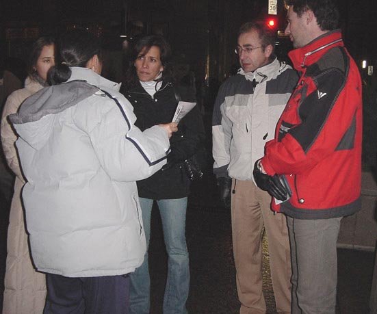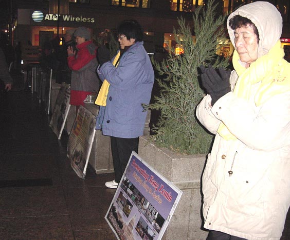 中国人接资料也多了。例如,有两个华人女大学生,刚开始不愿接资料,有个年纪大的女学员就与她们攀谈起来,她们就向学员问了许多问题,全都是受了中共江氏集团谎言的毒害,她们问,你们炼功为什么到天安门自焚,为什么不在家自己炼,等等。