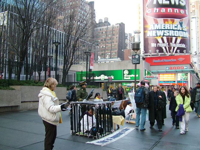 图片报道:法轮功学员在曼哈顿街头讲真象