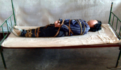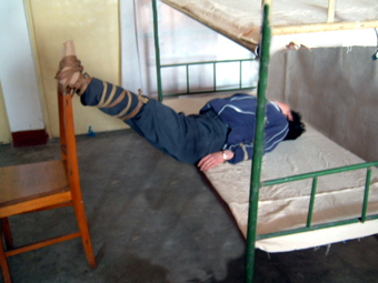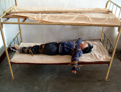 济南监狱的恶人们把李秀珍大绑在床上,强行插上管子,不拔出来,手脚不能动。