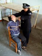 济南监狱的恶人们因李秀珍打坐疯狂的打骂她,每天毒打5、6次。白天绑在。