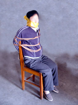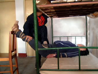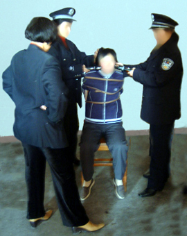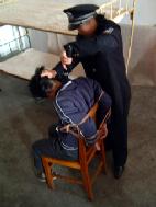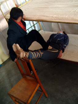 以下是大法弟子李秀珍在济南监狱遭受迫害图示。(以下照片为根据当事人描述,而重组的当时迫害的情景。)