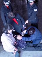 有次说上边有来检查的,济南监狱的恶人们强迫李秀珍穿囚服,李秀珍不穿,她们8个人把她打倒在地,头上一只脚,两胳膊、腿都坐满了人,她们踩着、跺着,李秀珍大声喊:“法轮大法好!”她们就恶毒的用臭袜子、臭鞋塞进李的嘴里,强行给她穿。