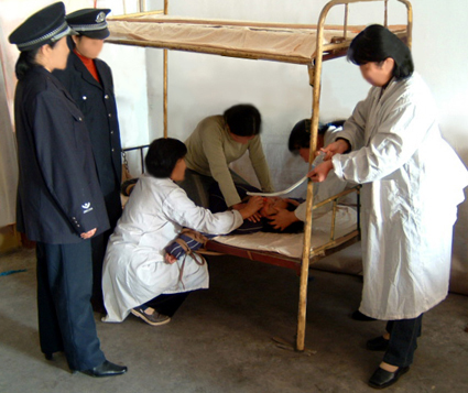 李秀珍天天喊大法好,她们用胶带封住嘴,关禁闭室,不许任何人接触,只有打人最凶的犯人在外值班。