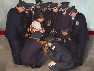 劳教所一女所长指使十几名男恶警,将一名大法学员李国华(50岁左右,山东某大学副教授)两只手向后铐在椅子背上,两只脚别在椅子腿里,用十几根电警棍连续电击九次。期间,女所长几次用听诊器听一听李国华的心脏,说“没有危险,继续电!”。暴徒们更加肆无忌惮地反复施暴。