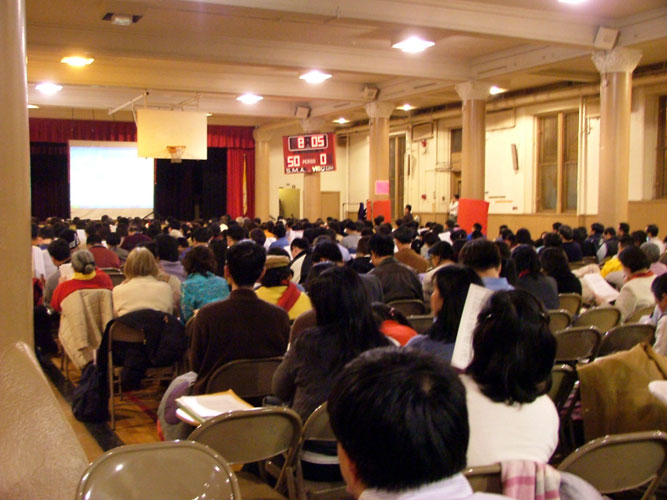 【明慧网2004年12月27日】(明慧记者纽约报导)2004年12月25日圣诞佳节,在纽约的法轮功学员迎来了一个特别的圣诞日。下午,从世界各地来到曼哈顿讲真象的各国学员和在大纽约地区的学员们一起,在曼哈顿中城举办了一次大组集体学法,通读了“2004年纽约国际法会讲法”。晚间,师父来到现场看望和鼓励大家。