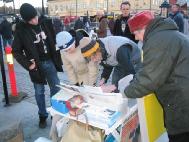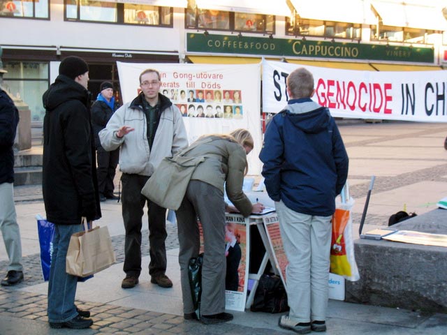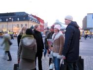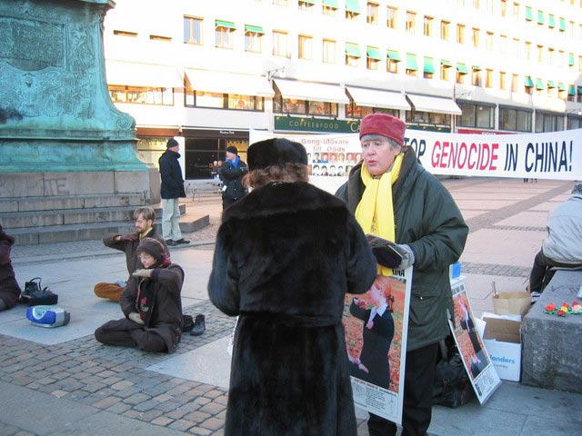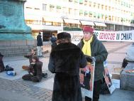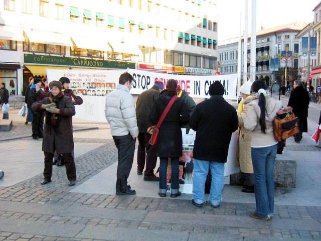 圣诞来临的前夕,对许多瑞典人来说是一个充满团圆与快乐的时光。此时此刻,学员们仍然不忘在中国的法轮功学员以及他们的家人,他们正在承受着无法形容的残酷迫害。学员们要向人们揭露这场正在中国发生的残酷迫害。