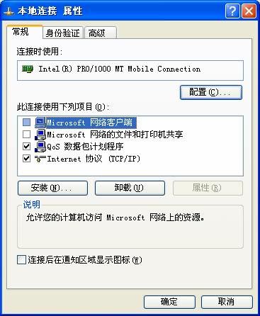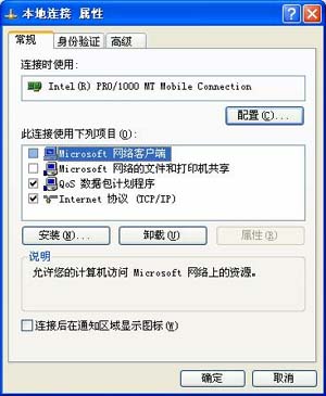 解决办法就是去掉网络连接上绑定的“Microsoft 网络”,可以从“组件”和“协议”两方面来设置。