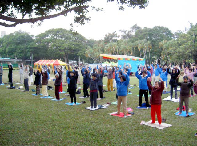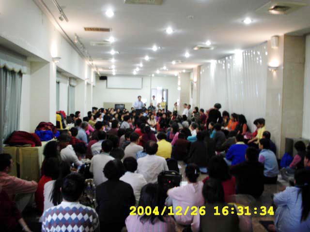 ![]() 台中中山公园2004年12月26日清晨集体洪法炼功 | ![]() 台中国军英雄馆会议厅集体学法交流 |