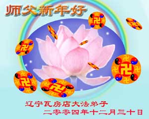 值此新年之际,我们抚顺市的全体大法弟子万分想念师父,盼望能早日见到伟大的师尊。请师父放心,我们决不辜负师父的慈悲苦度。做好大法弟子应该做的三件事,救度更多的众生,走好走正最后的证实大法的路。
