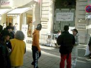全天活动的最后一项是在驻马赛的中国领事馆前的烛光守夜。平静的请愿活动吸引了一位蓝色法国普罗旺斯广播电台的记者,他偶然经过这里却停了下来,并对法国法轮功协会主席做了采访。