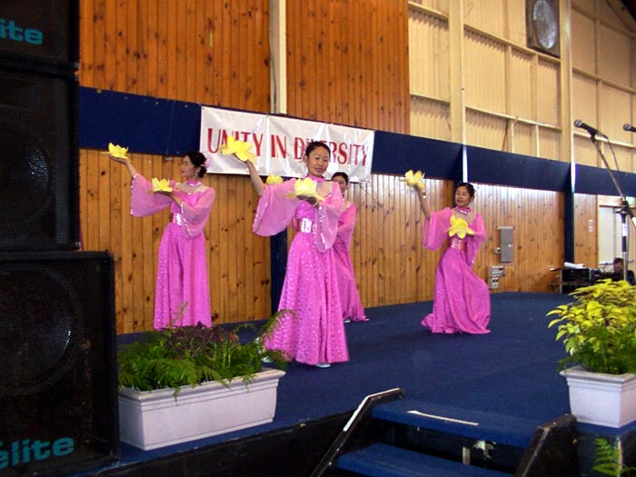 【明慧网2004年12月6日】2004年12月4日,新西兰法轮功学员参加了罗陀如阿多种族事务委员会(Rotorua ethnic council)主办的2004年多元文化节活动(Multicultural festival)。学员们表演了舞蹈“天地”、腰鼓“鼓乐神威”,并展示了法轮功功法,受到民众的欢迎。