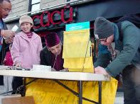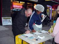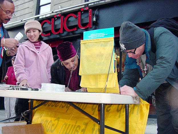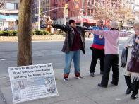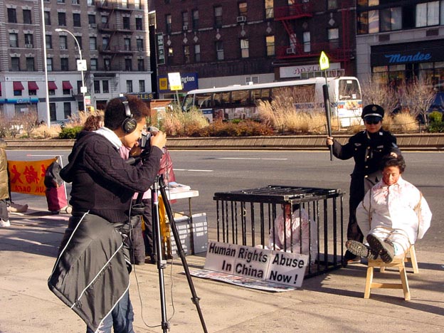 ![]() 纽约市学院电影制作系的女学生认真拍摄记录片 | ![]() 反酷刑展 | ![]() 学员炼功 |