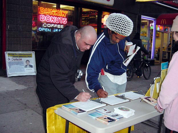 曼哈顿平凡祥和的一天就这样结束了,学员们都很高兴:今天真好,很多人拿资料,了解真象,签名,学功……