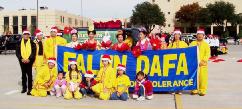 一位女学员说,两次游行她都是在发法轮功的真象材料,尤其是葡萄树市观看游行的人非常的多(注:葡萄树市的游行是北德州地区最大的圣诞灯光游行,一百多个团体参加),人们都非常高兴能得到真象材料,由于当时发材料的人手有限,许多人主动过来找学员要《Falun Dafa Reader》。