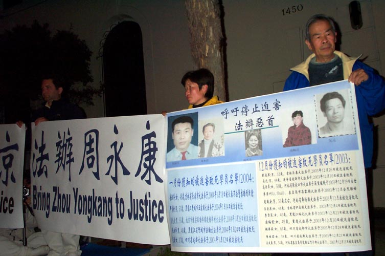 来自南湾的法轮功学员曾先生说:“我们来领馆就是要求中国政府停止迫害,同时告诉那些追随江××迫害法轮功的人,停止继续作恶,因为作恶者必将遭到制裁,包括那些帮助江××在海外散布仇恨法轮功谣言的领馆官员。由于罗干、刘京和周永康至今仍然积极帮助江××迫害法轮功,从现在起,我们除了要求法办江××,还要求法办罗干、刘京和周永康。”(明慧记者黄凯莉旧金山报道)