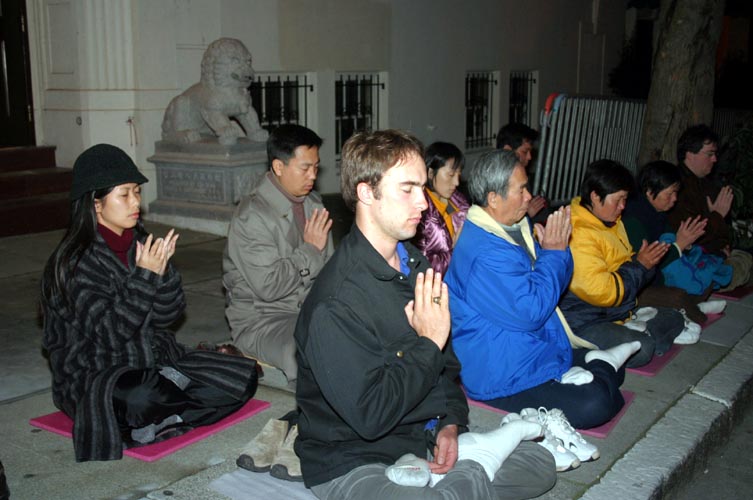 来自东湾的卞先生说:“我们在海外,可是心一直是与大陆学员连在一起的。他们在大陆冒着生命危险用各种方式让更多的民众了解法轮功的真象,揭露江××的谎言。最近大陆对法轮功学员展开疯狂搜捕,我们海外的学员应该声援我们的同修,来领馆就是这个目的。”