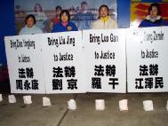 这一天,对西人法轮功学员索菲亚-布朗文来说,更是不寻常的一天,两年前的2月14日,她正和其他50多位西人法轮功学员一起在北京请愿,一到天安门广场,她就被警察抓走了,最后遣返回国。她说,”这个特殊的经历我永远不会忘记,今天我在这里是为了呼吁停止这场迫害,呼吁世人帮助中国的法轮功学员。”