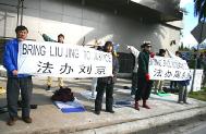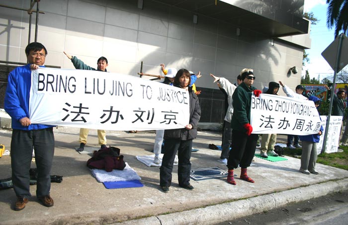 针对国内对法轮功学员迫害的升级,美国德州休士顿法轮功学员从2月9日至14日,持续在中领馆前举行请愿活动。学员们在刺骨的寒风中打出“法办江泽民”、“法办罗干”、“法办刘京”、“法办周永康”等中英文横幅横幅。揭露江泽民犯罪集团迫害法轮功的非法行为,揭露他们对人民犯下的滔天大罪。请愿活动引起了路人极大的关注,一位美国人还特地拿来了照相机,拍下这一情景。