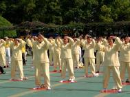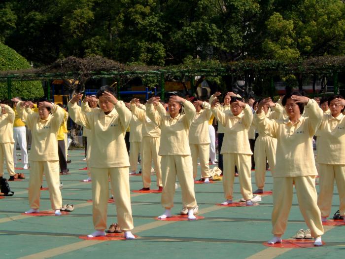 为使更多人接触了解大法的美好,2月15日上午,一百多名法轮功学员聚集在展场对面的公园内表演了五套功法。现场有人义务教功,吸引了许多民众围观,有些人在一旁跟着学动作,也有多位人士马上表示想要学炼法轮功。